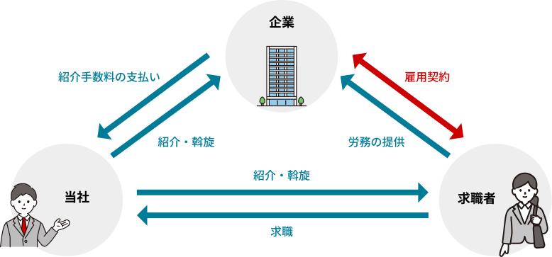 人材紹介とは、企業からの求人申込みを受け、企業と求職者の雇用関係の成立を斡旋する仕組みのことです。